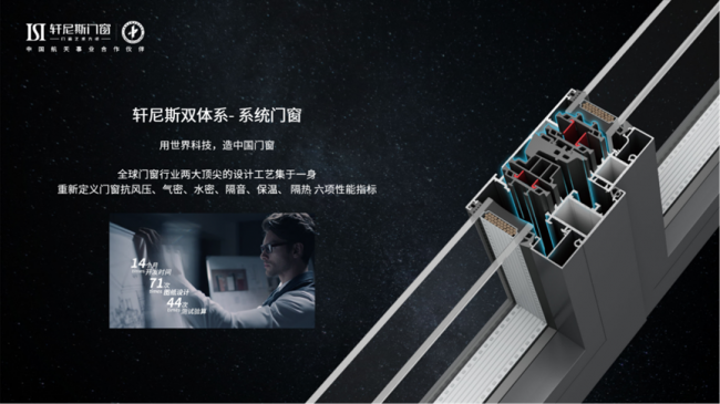 产品是加盟盈利的核心,轩尼斯以100多项核心专利构建技术壁垒,先后推出双断桥技术、隔音技术架构技术等,持续突破行业上限。首创的“双体系-系统门窗”,融合德系隔热结构与日系密封技术,隔热性能较普通产品提升61%,隔声性能提升13%,气密、水密、抗风压等关键指标均优于同类产品。